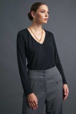 Μπλούζα basic με V λαιμόκοψη. Διαθέσιμη σε εκρού, καφέ και μαύρη απόχρωση.