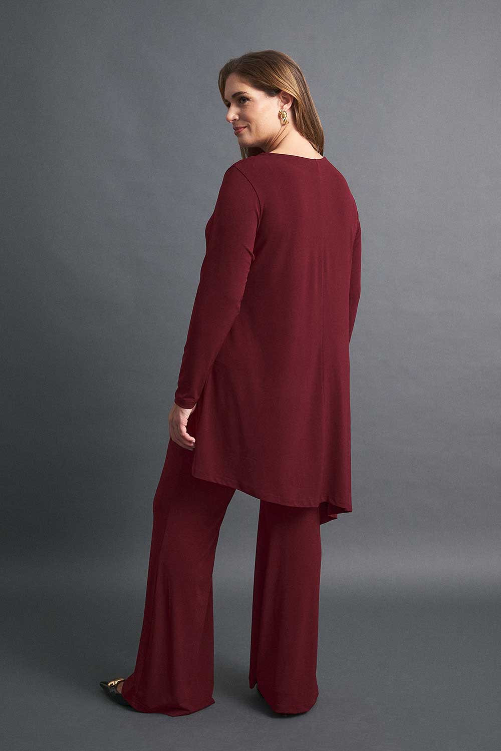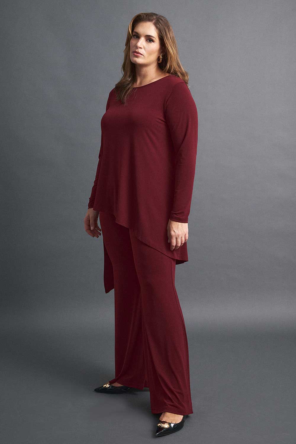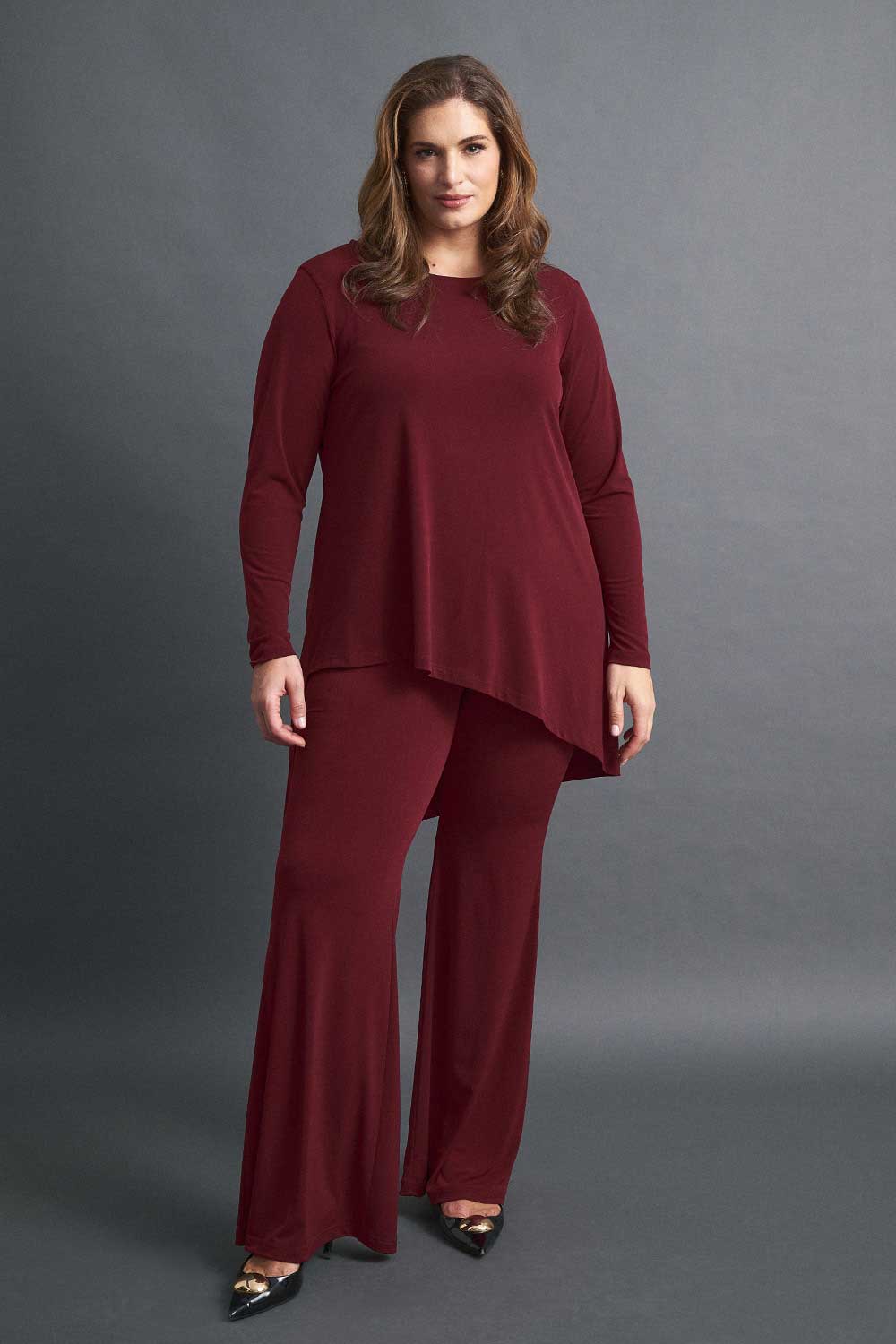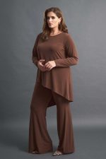 Παντελόνα plus size με λάστιχο στη μέση. Διαθέσιμη σε μαύρο, καφέ και μπορντό χρώμα.