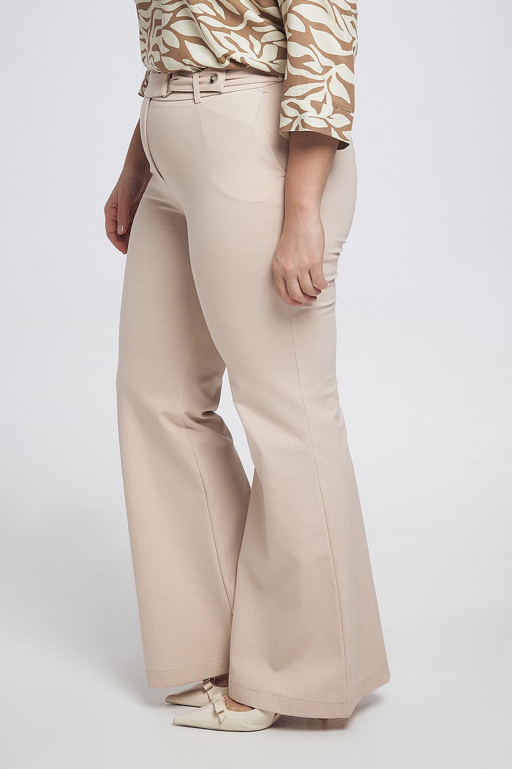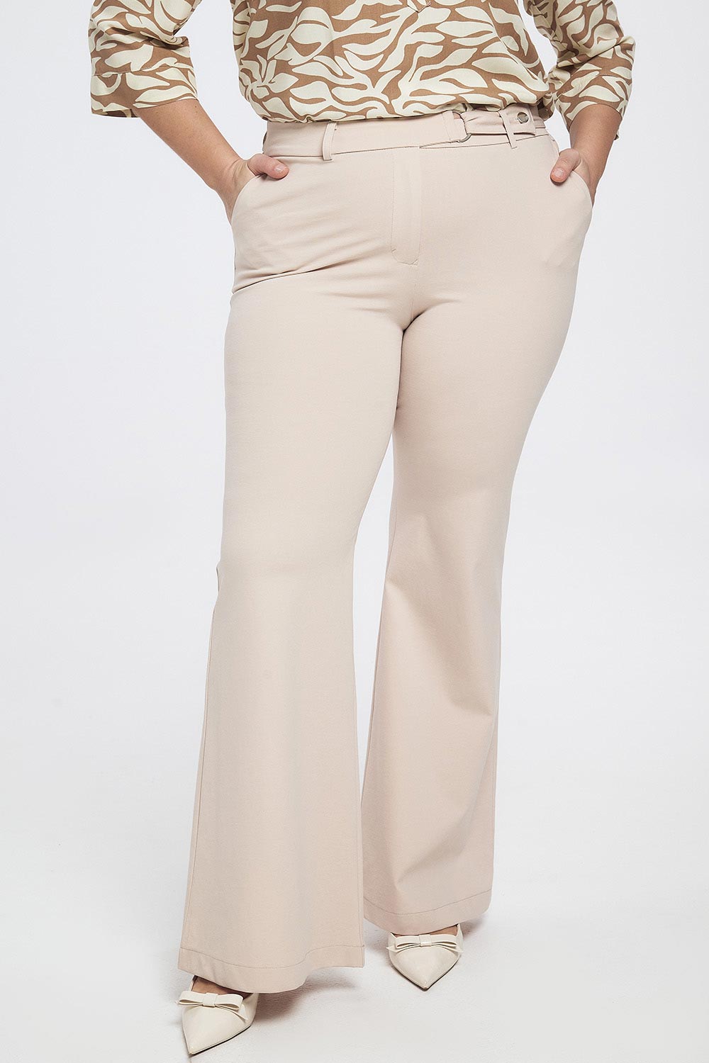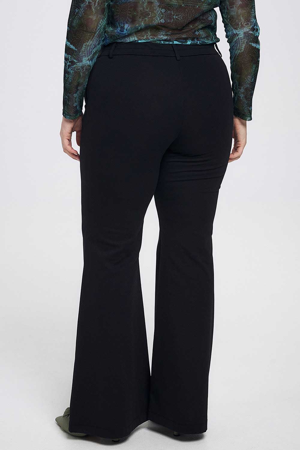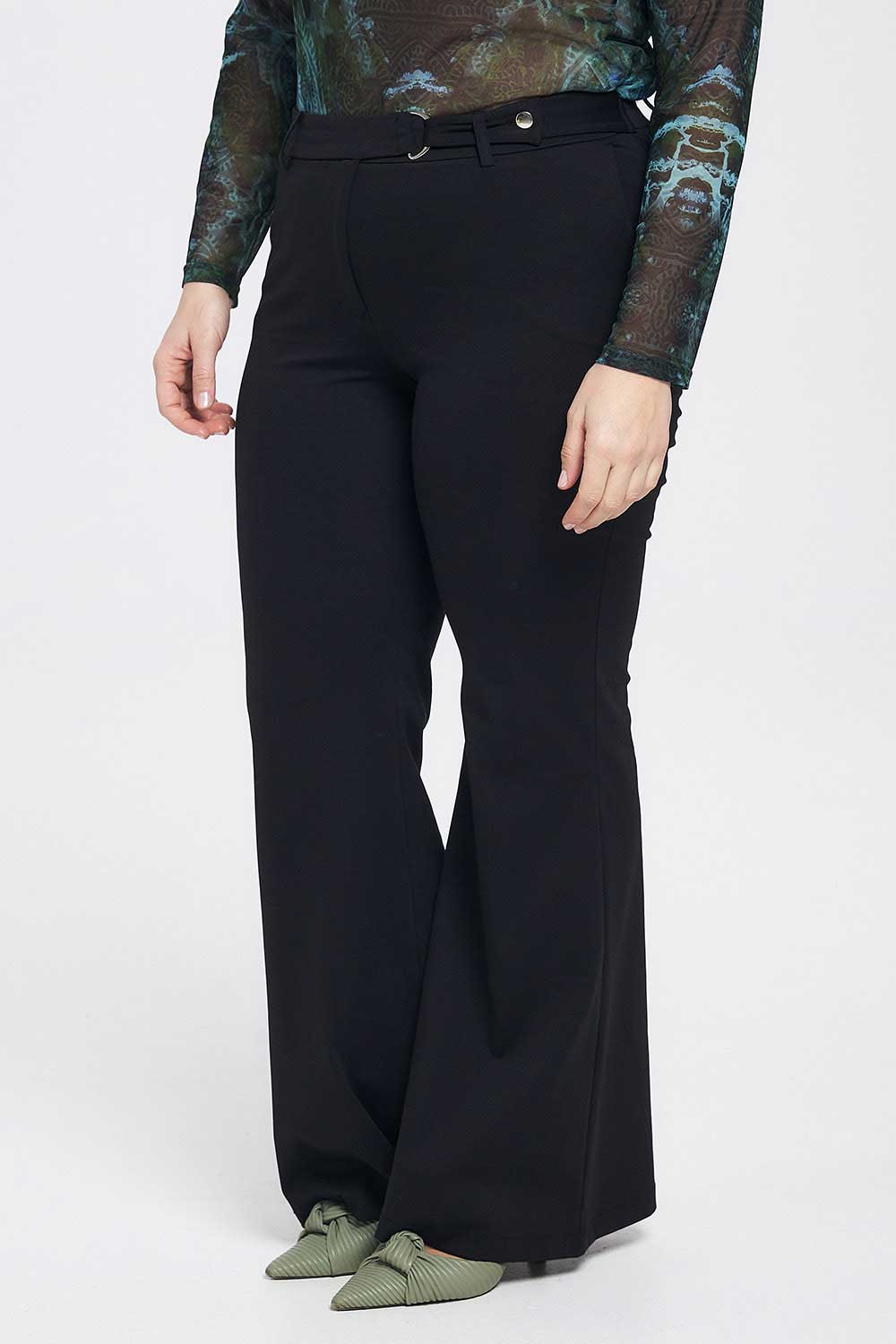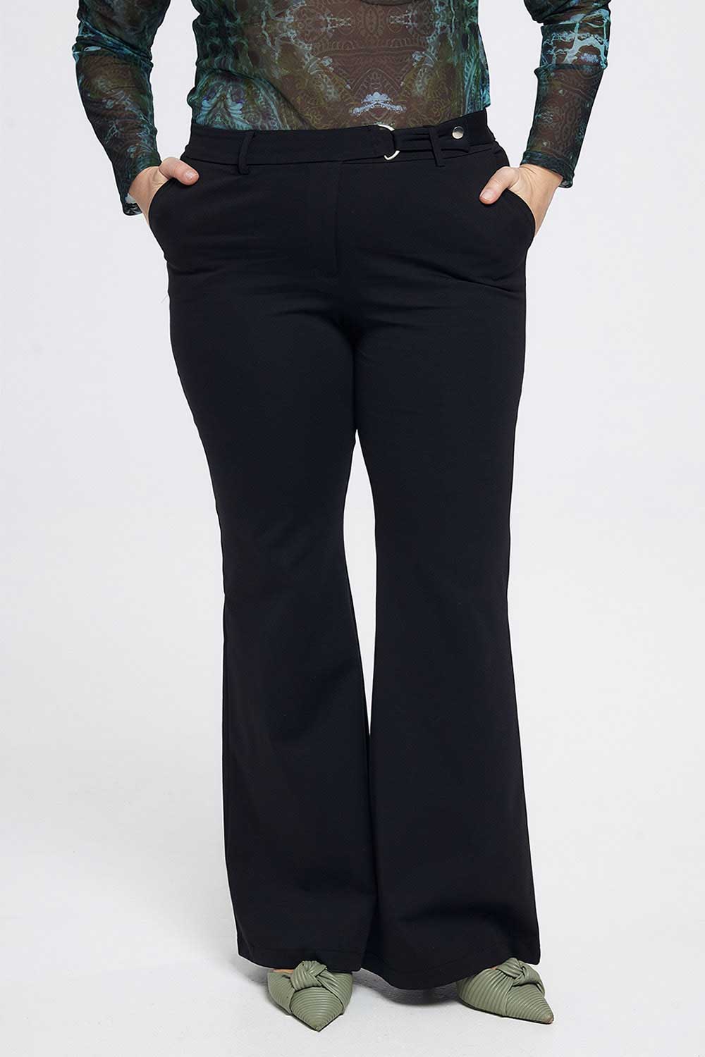 Παντελόνι plus size σε στυλ καμπάνα με ζωνάκι. Διαθέσιμο σε μαύρη και εκρού απόχρωση.