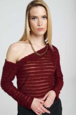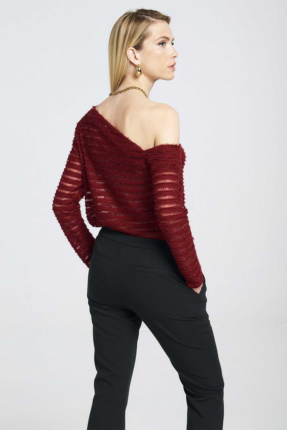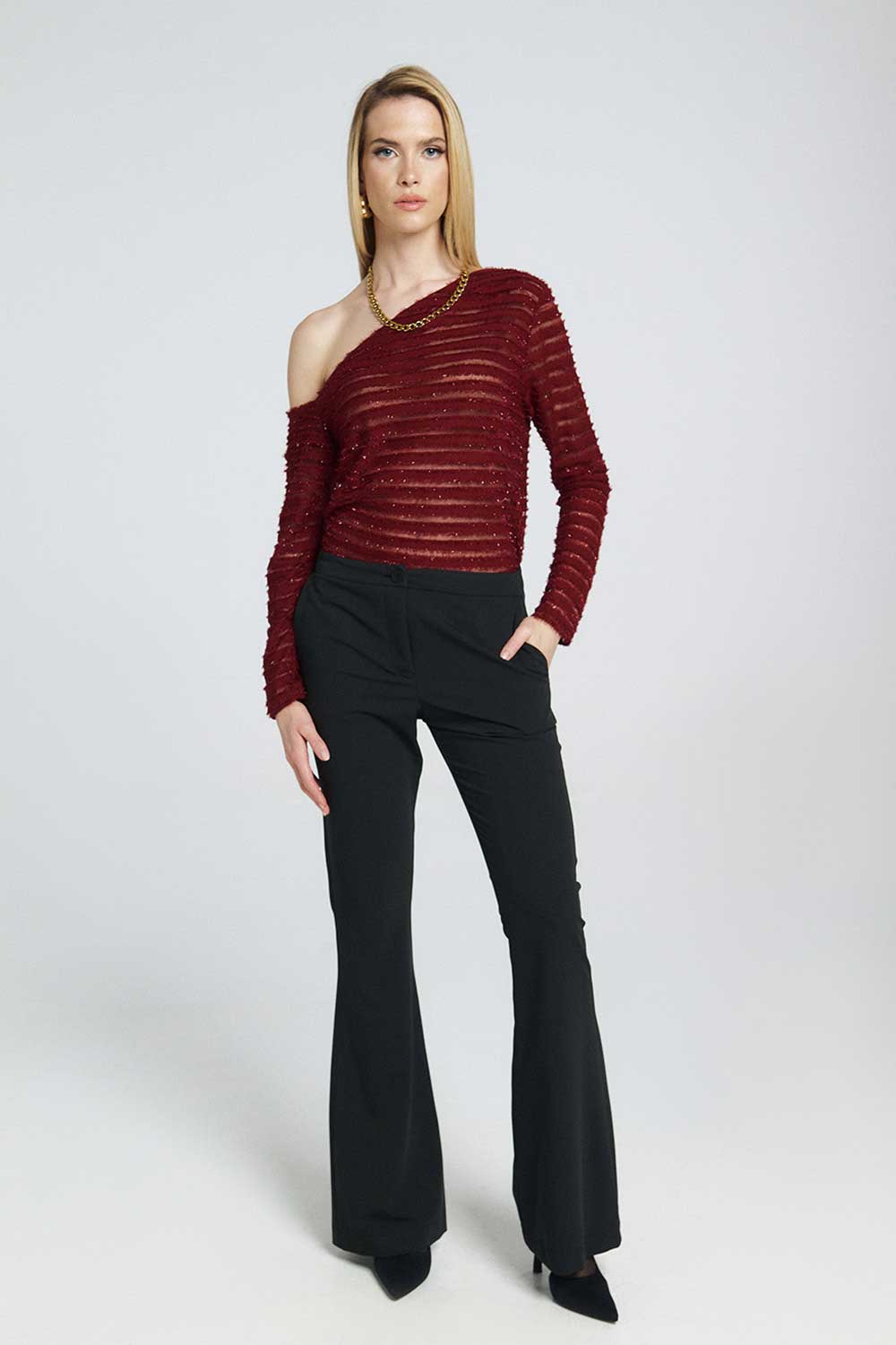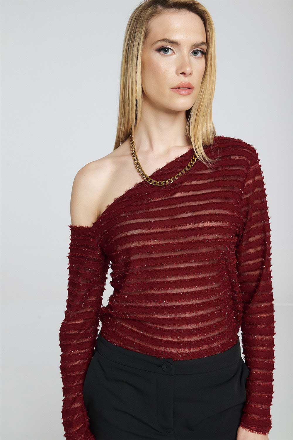 Μπλούζα one size, με ανοιχτό τον έναν ώμο και γυαλάδες και διαφάνειες.