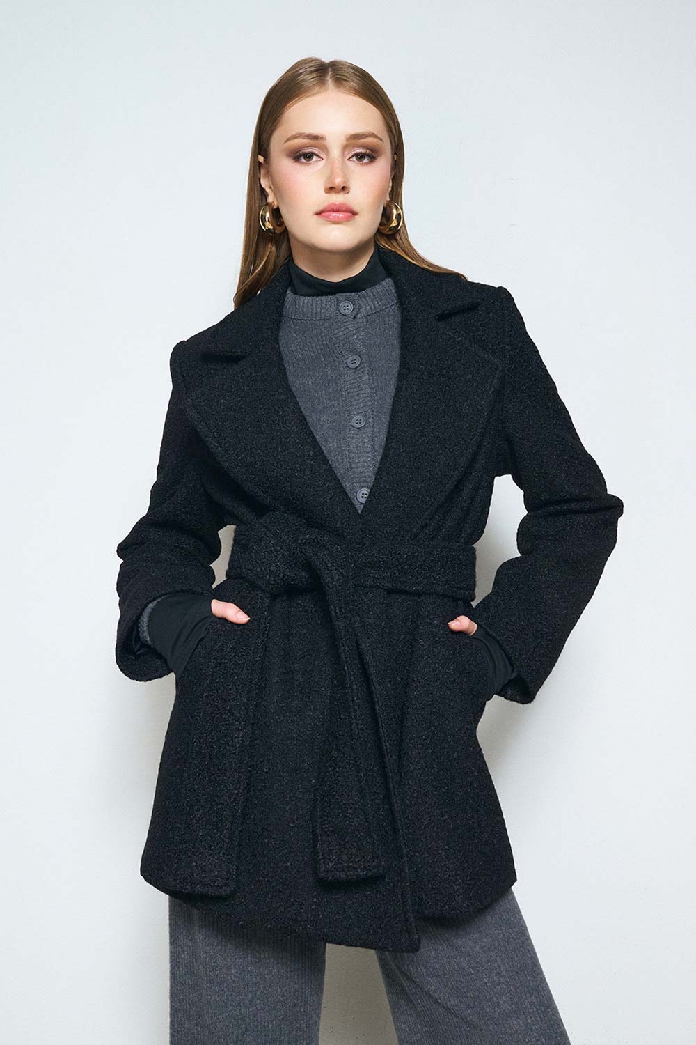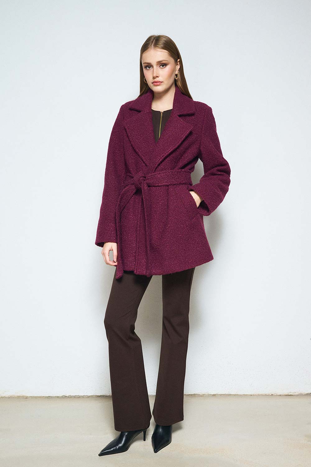 Ημίπαλτο με ζωνάκι απο το ίδιο ύφασμα. Διαθέσιμο σε κάμελ, μπορντό και μαύρο χρώμα.