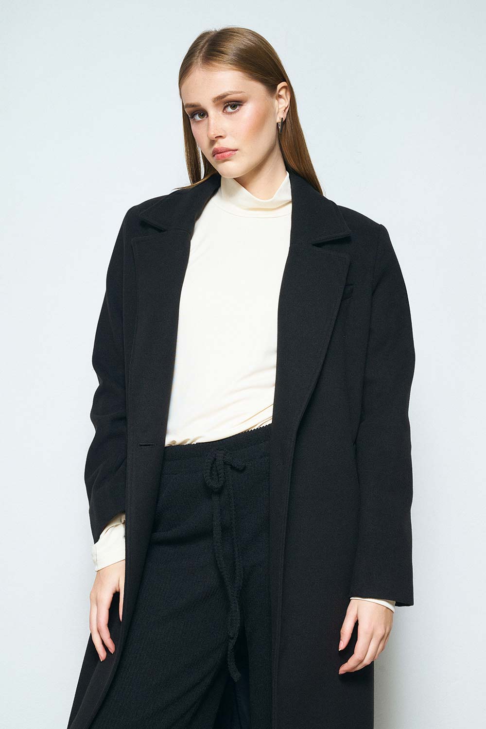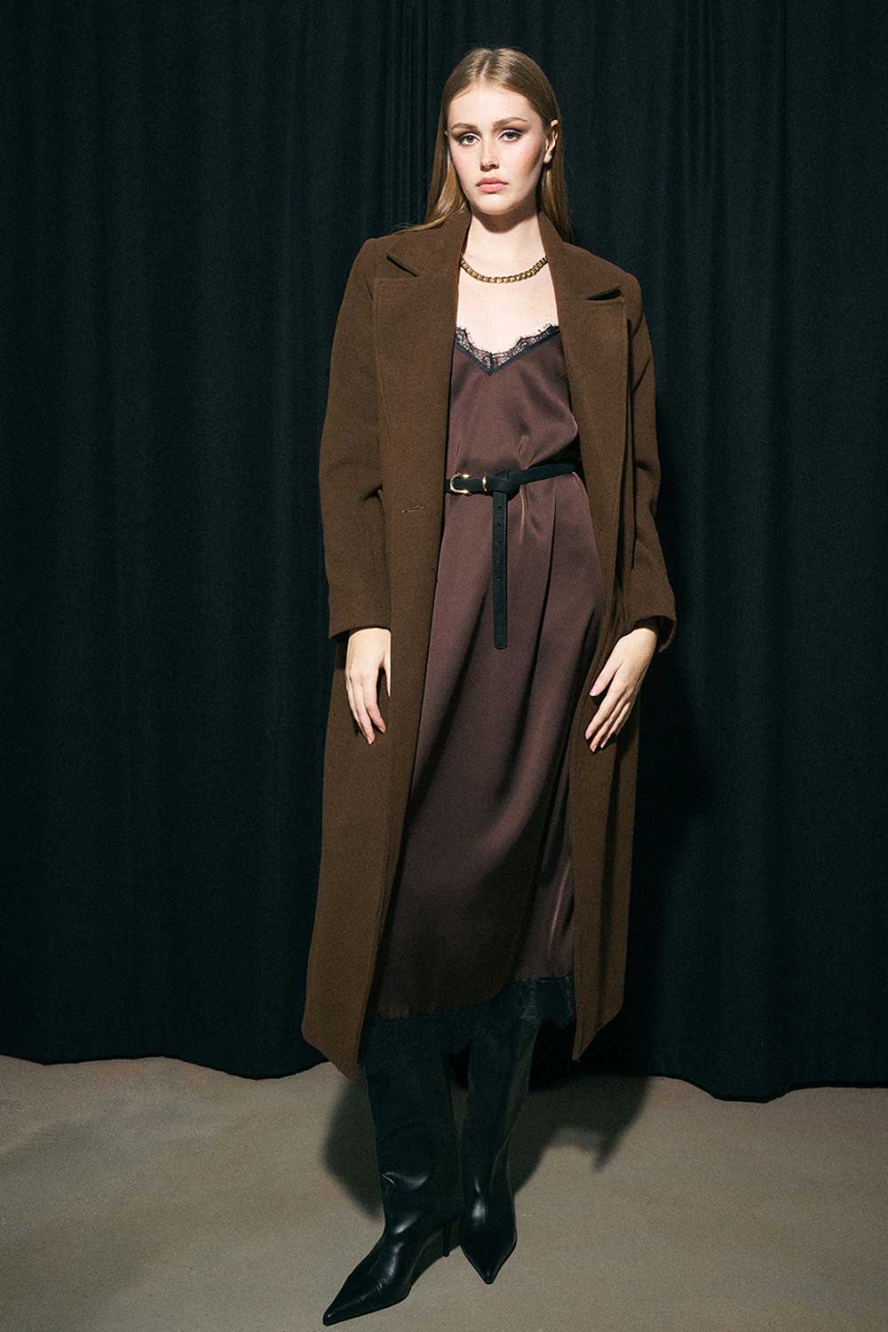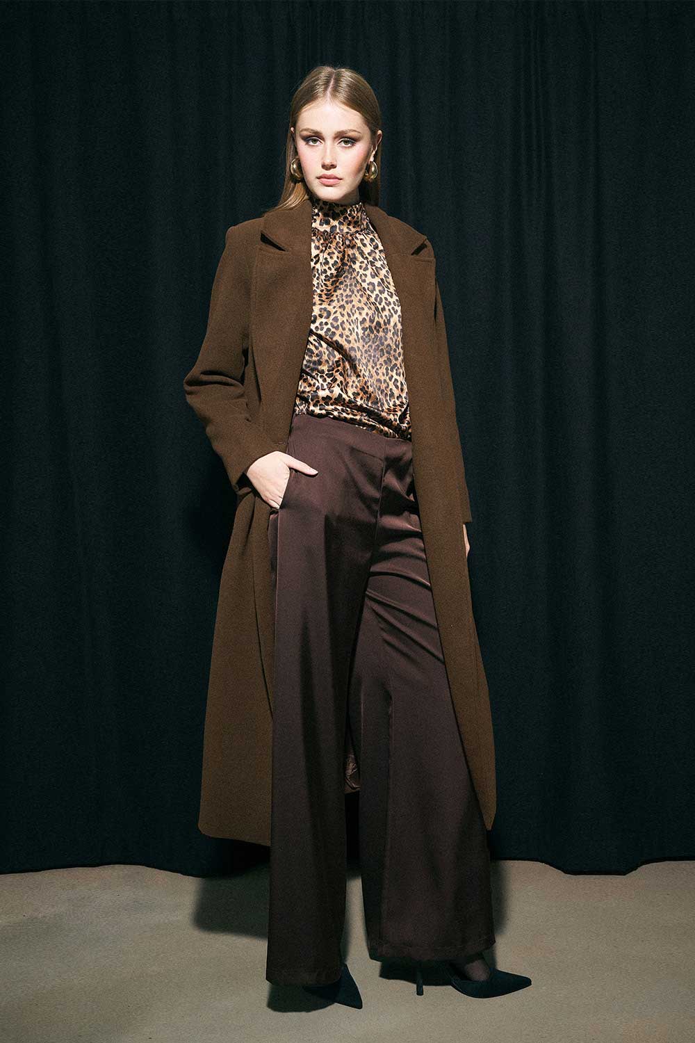 Παλτό με μακρύ μήκος, διαθέσιμο σε καφέ, μαύρη και μπορντό απόχρωση.
