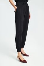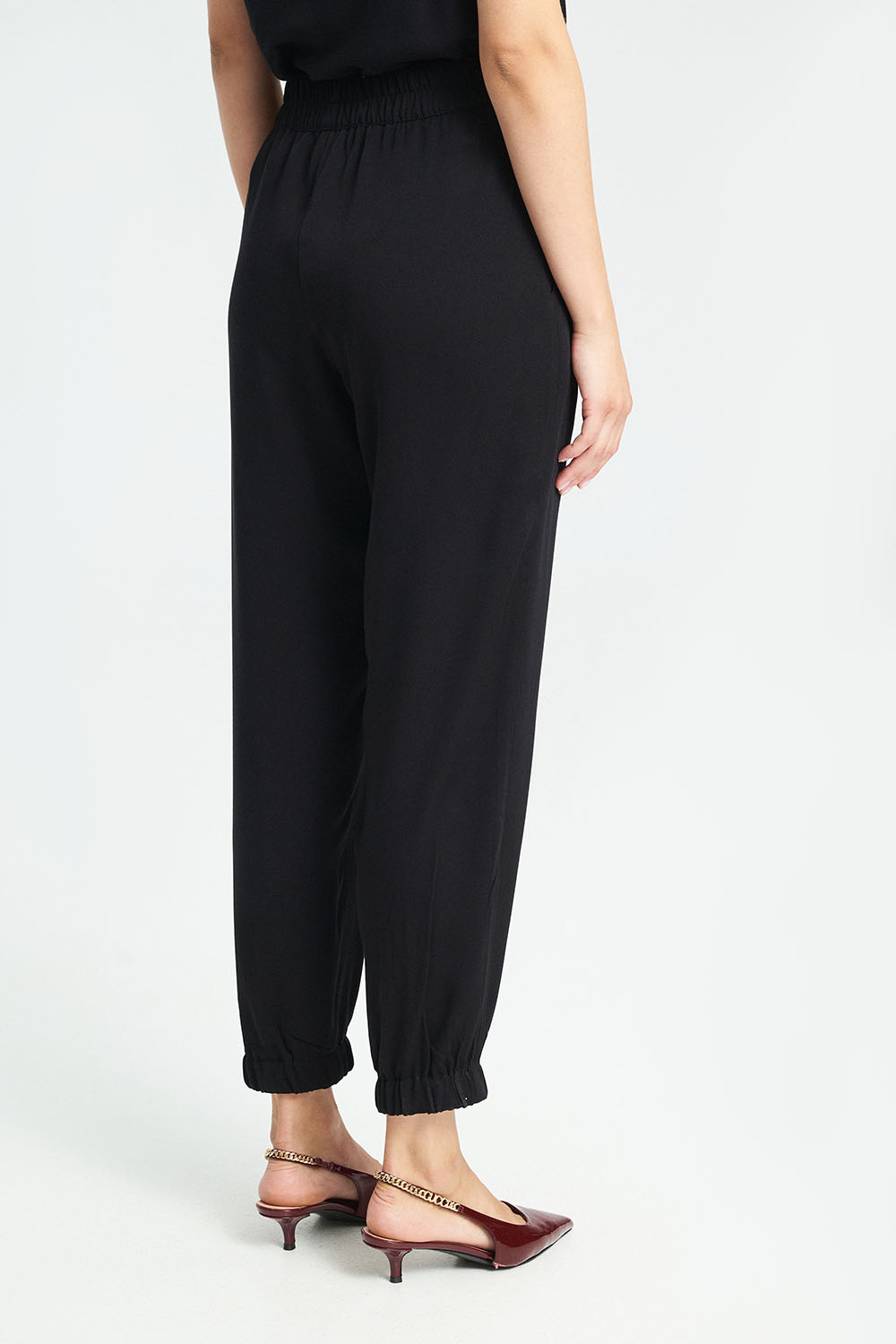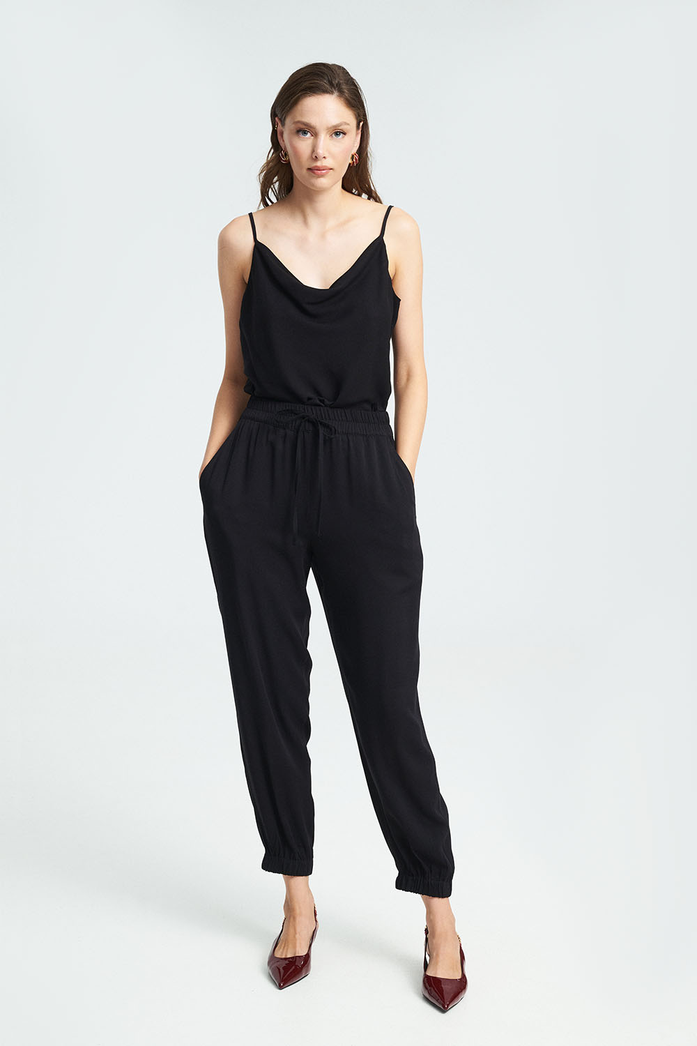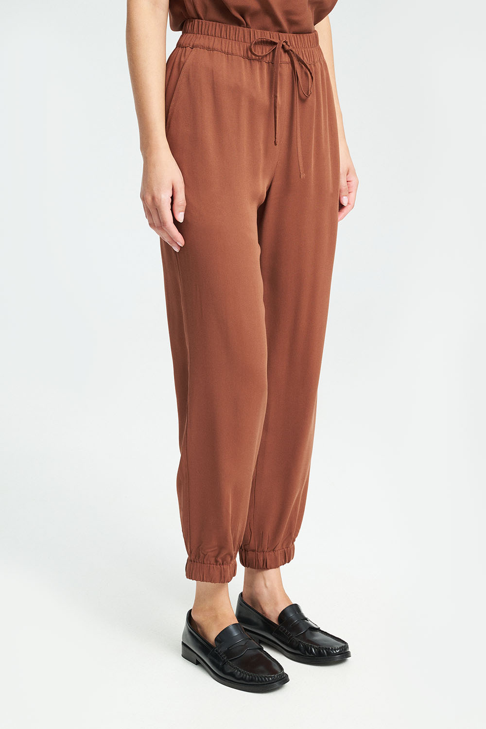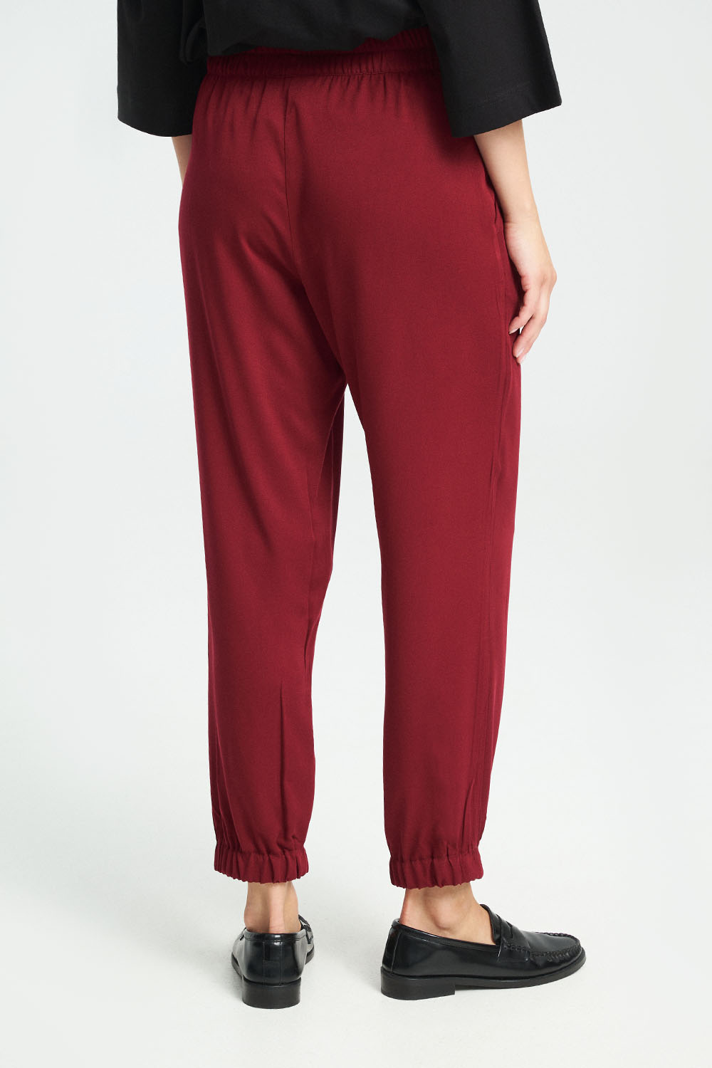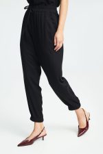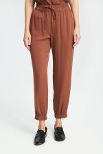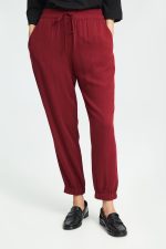 Παντελόνι με λάστιχο στη μέση και κορδόνι ρύθμισης. Διαθέσιμο σε κάμελ, μαύρο και μπορντό χρώμα.