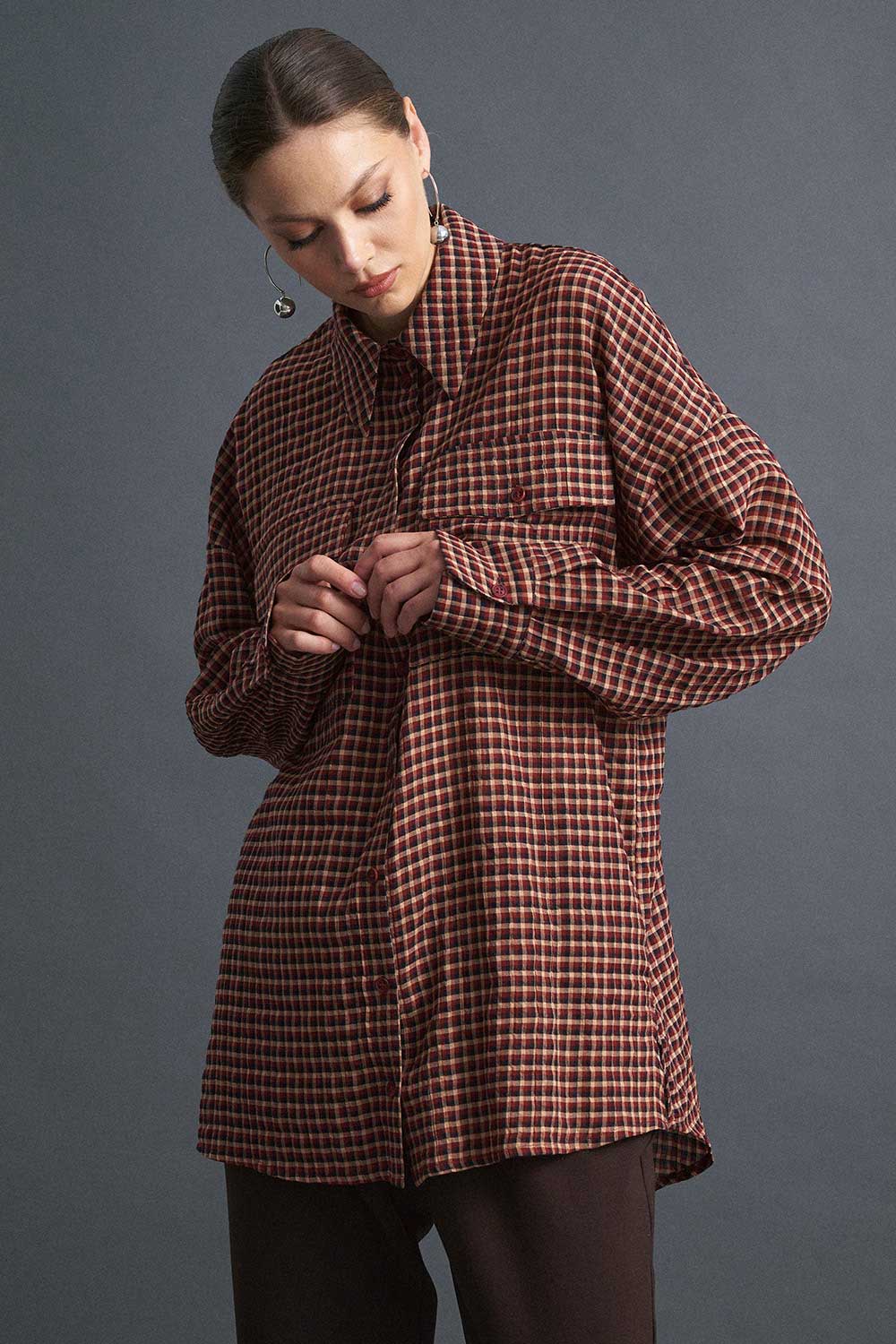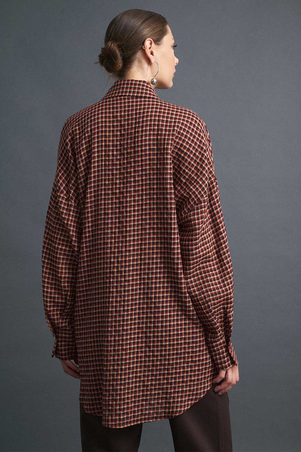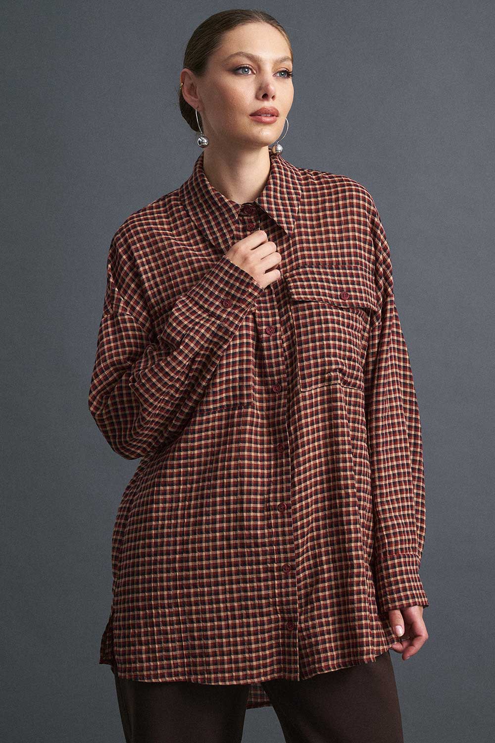Καρό πουκάμισο με μπεζ-μπορντό αποχρώσεις σε άνετη γραμμή.