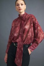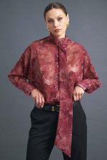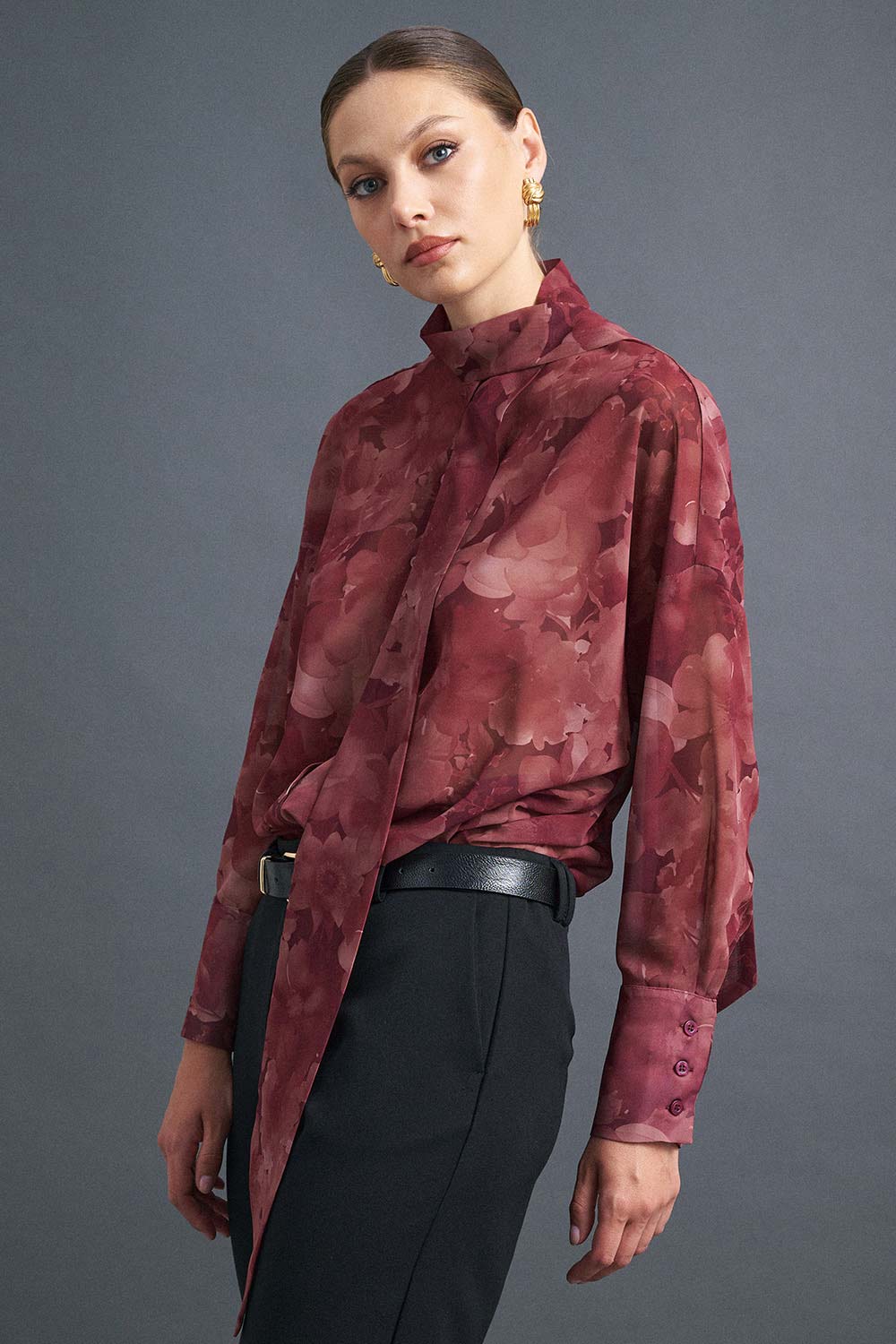 Πουκάμισο one size με floral σχέδιο σε μπορντό απόχρωση και δέσιμο στο λαιμό.