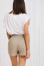 Σορτσάκι με λάστιχο στη μέση σε μπεζ, κίτρινη και φούξια απόχρωση.