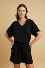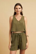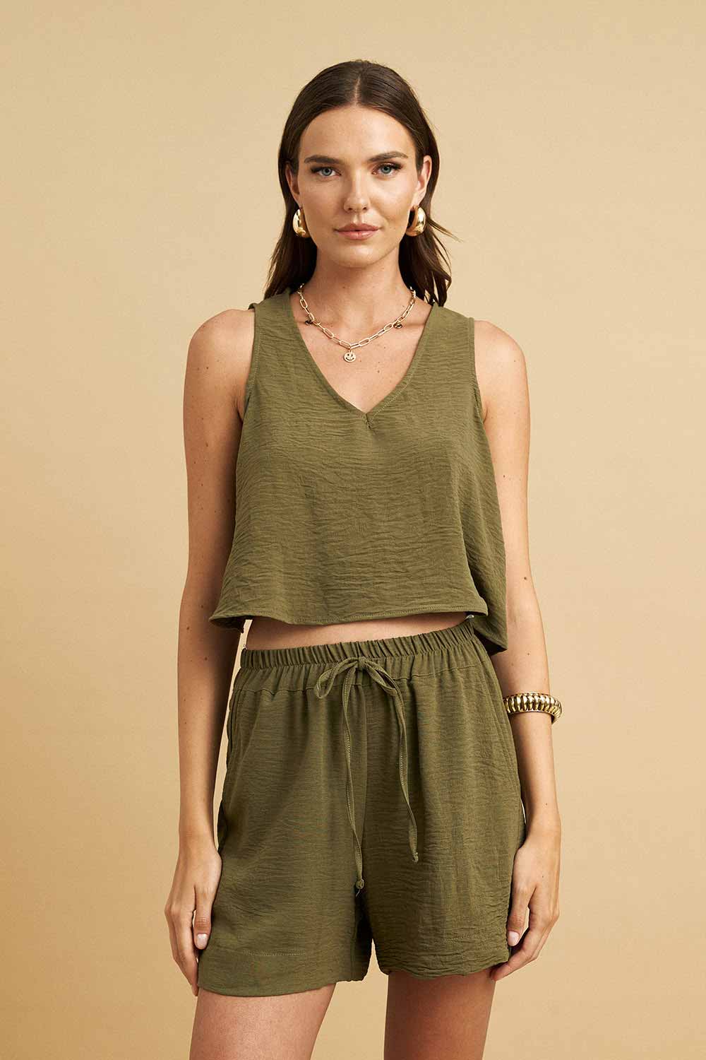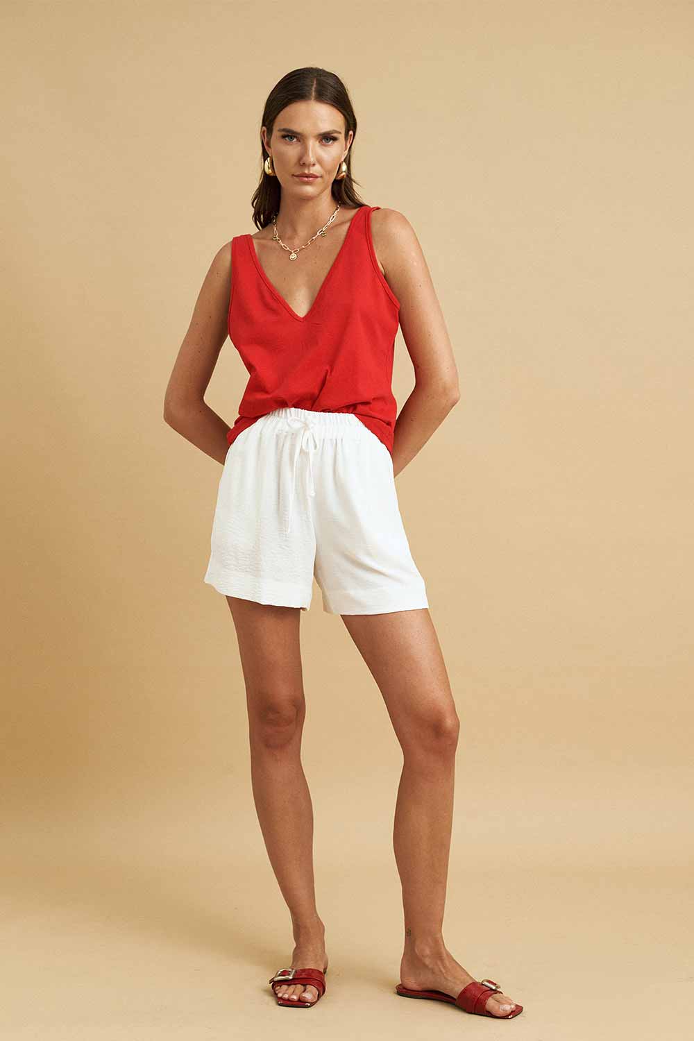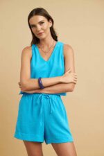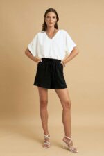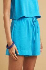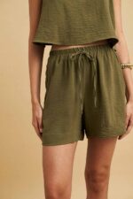 Shorts με λάστιχο στη μέση για άνετη εφαρμογή και κορδόνι ρύθμισης. Διαθέσιμο σε λευκό, γαλάζιο, χακί και μαύρο χρώμα.