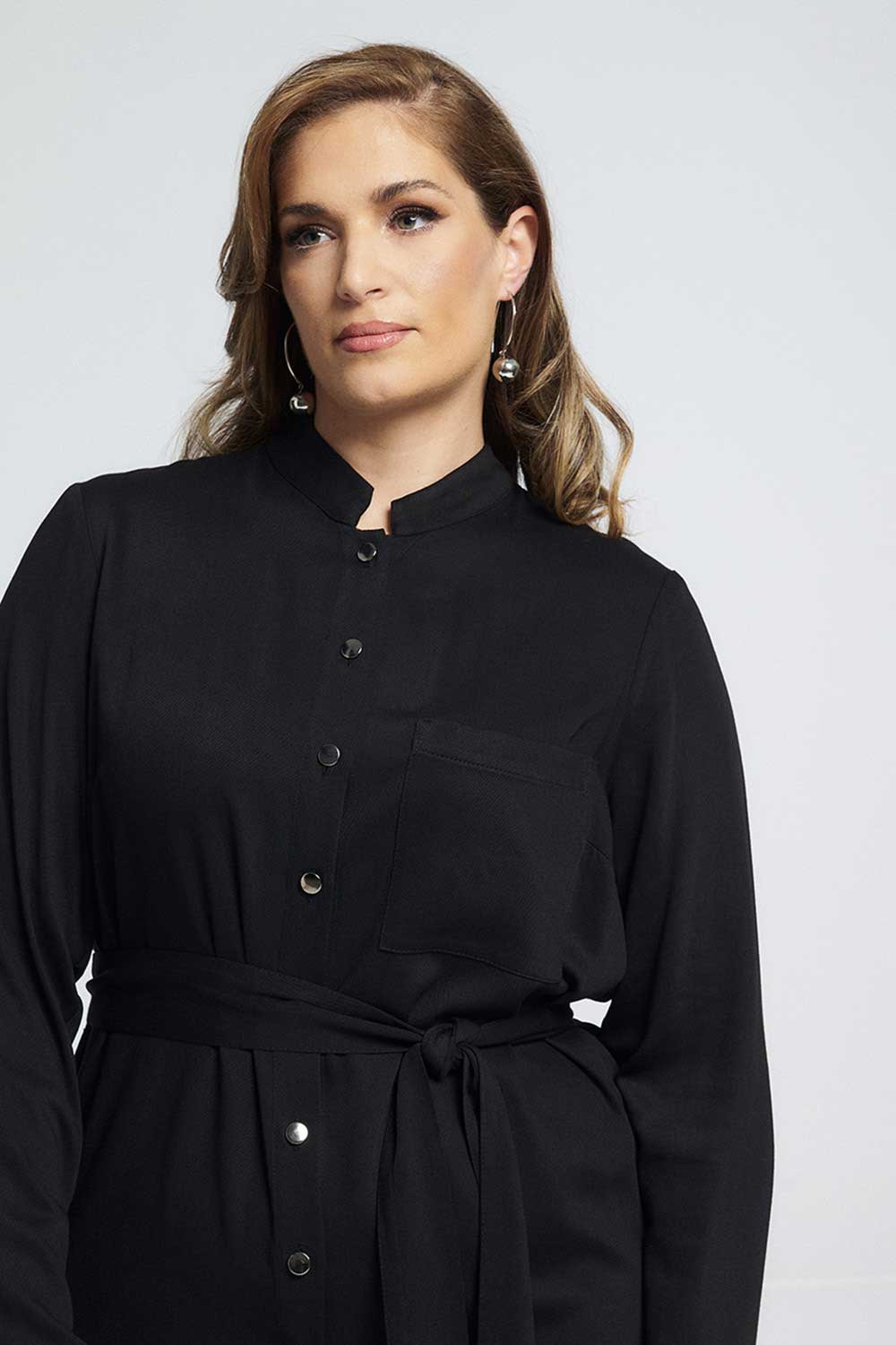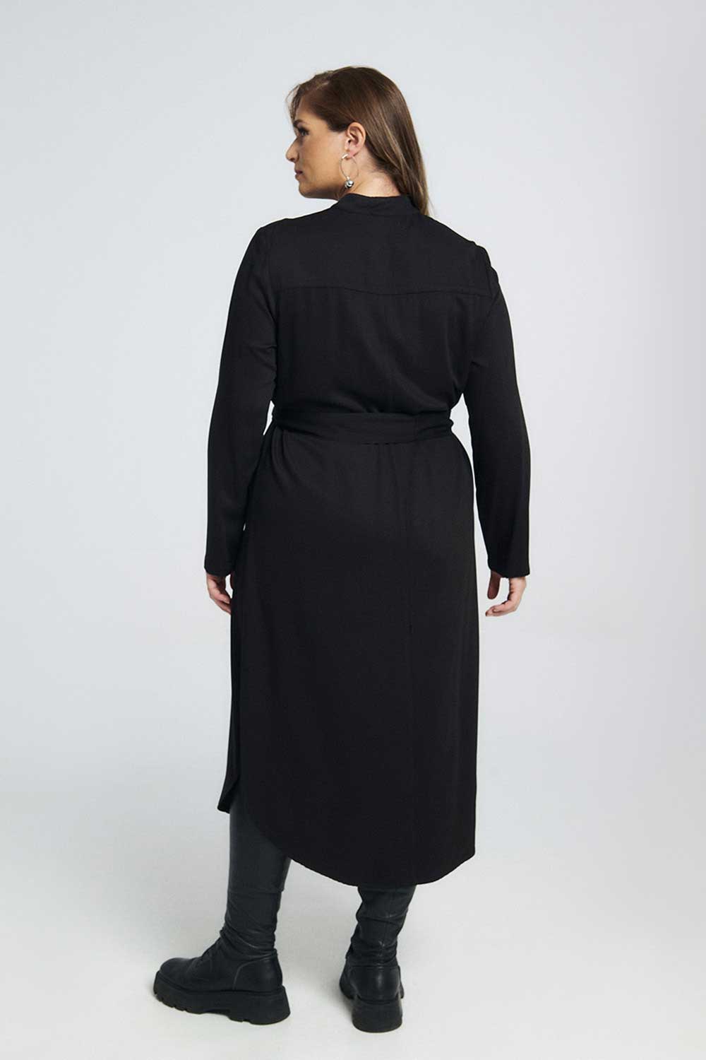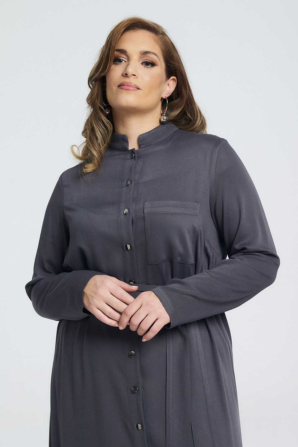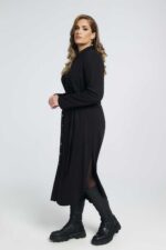 Φόρεμα plus size σεμιζιέ, με ζωνάκι από το ίδιο ύφασμα. Διαθέσιμο σε μαύρο και σκούρο γκρι χρώμα.