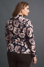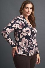 Εφαρμοστή μπλούζα plus size με ροζ floral σχέδιο σε μπλε σκούρη βάση.