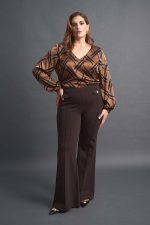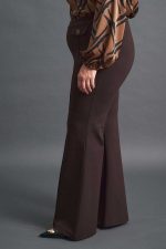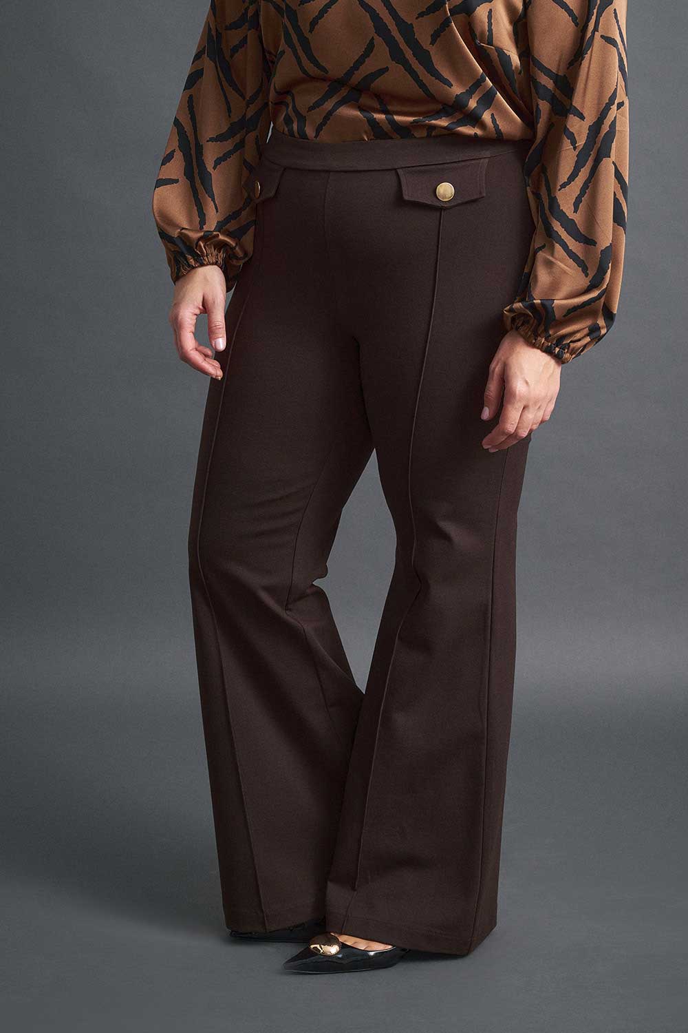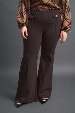 Παντελόνι plus size με διακοσμητικά χρυσά κουμπάκια. Διαθέσιμο σε μπορντό και καφέ απόχρωση.