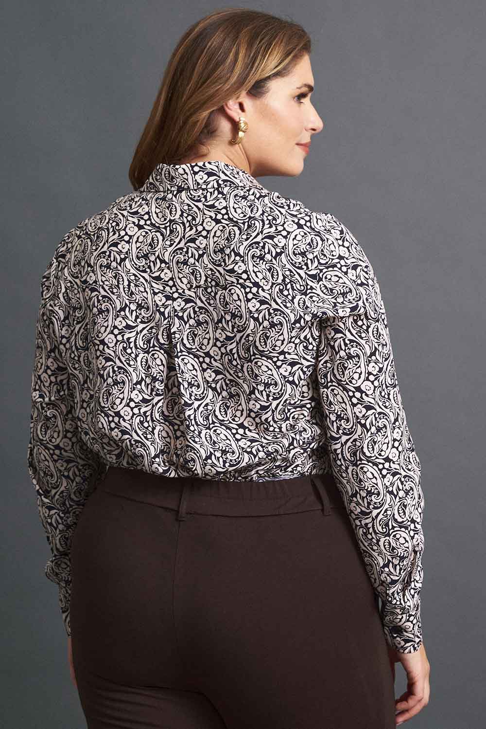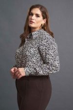 Πουκάμισο plus size με εμπριμέ ασπρόμαυρο σχέδιο.
